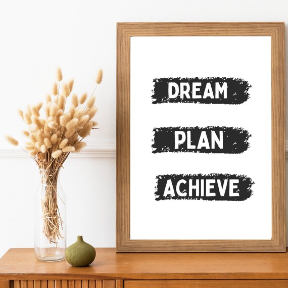 Dream, Plan, Achieve Motivational Quote, Quotes Print