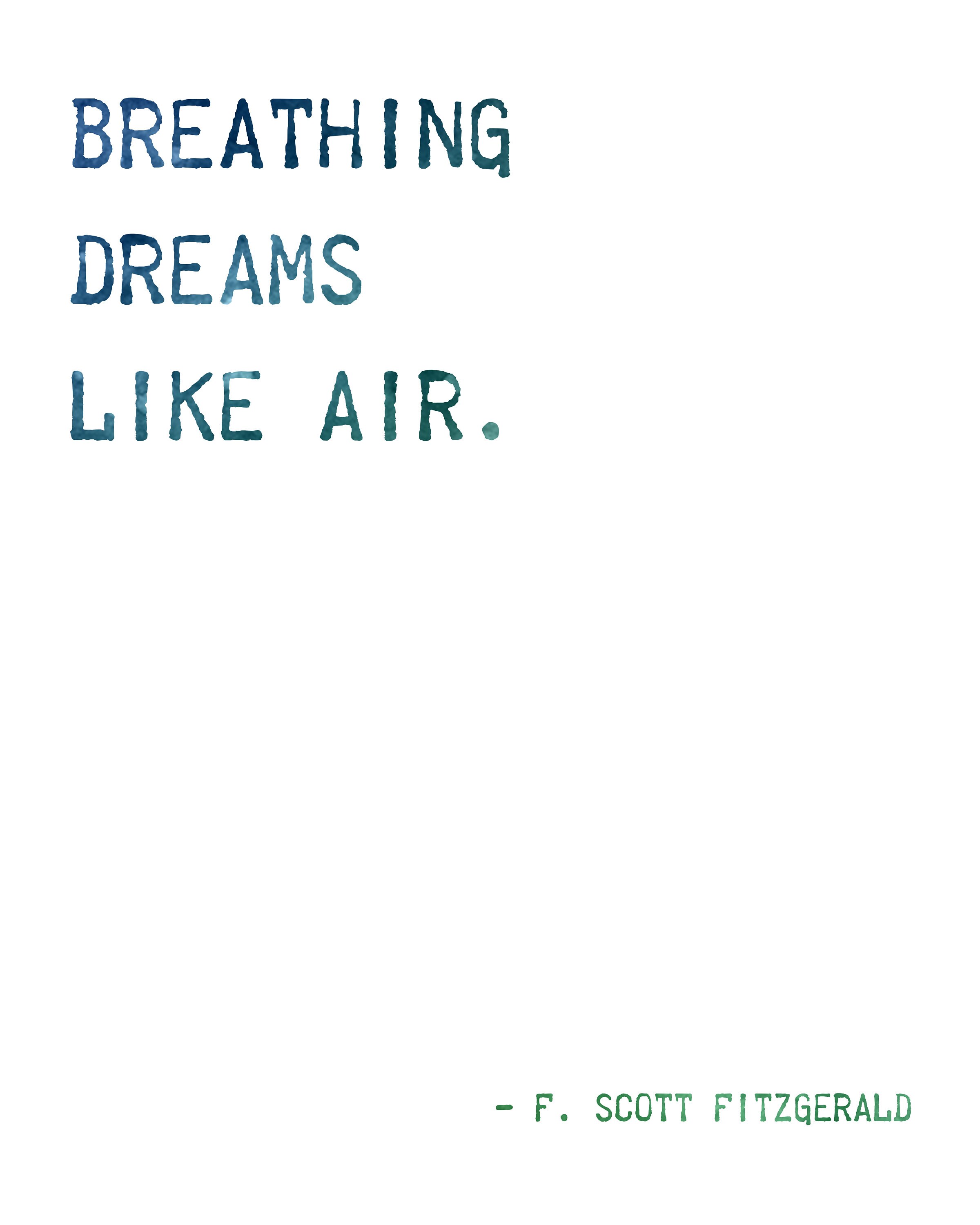 F Scott Fitzgerald Quote breathing Dreams Like Air Etsy | Scott