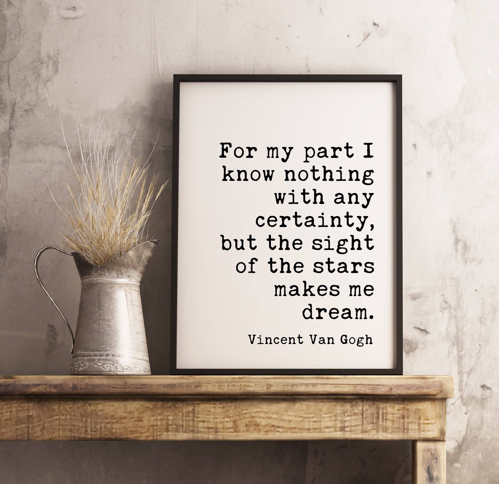 Quote from Vincent Van Gogh: “I know nothing with any certainty